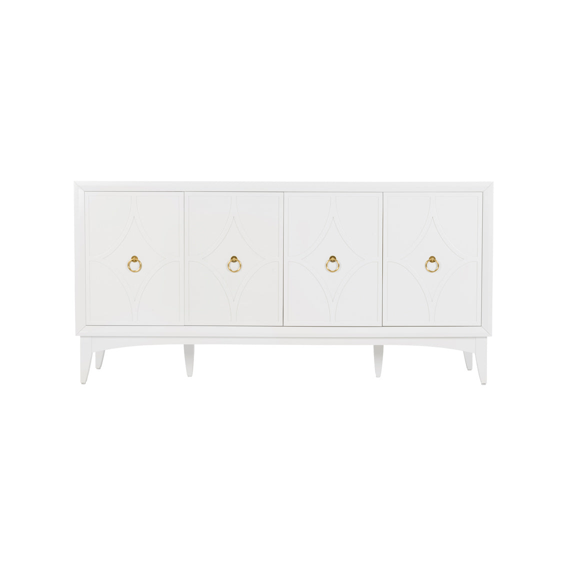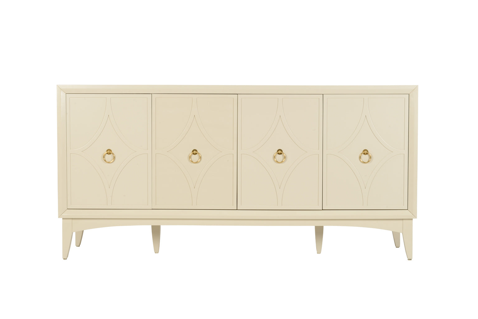 Designed to complement and elevate existing interiors, this mid-century modern wood sideboard features a distinctive carved diamond motif across four doors, adding texture, depth, and architectural interest. Its tailored silhouette blends classic proportions with graphic detail, making it a refined statement piece for dining and entertaining spaces.