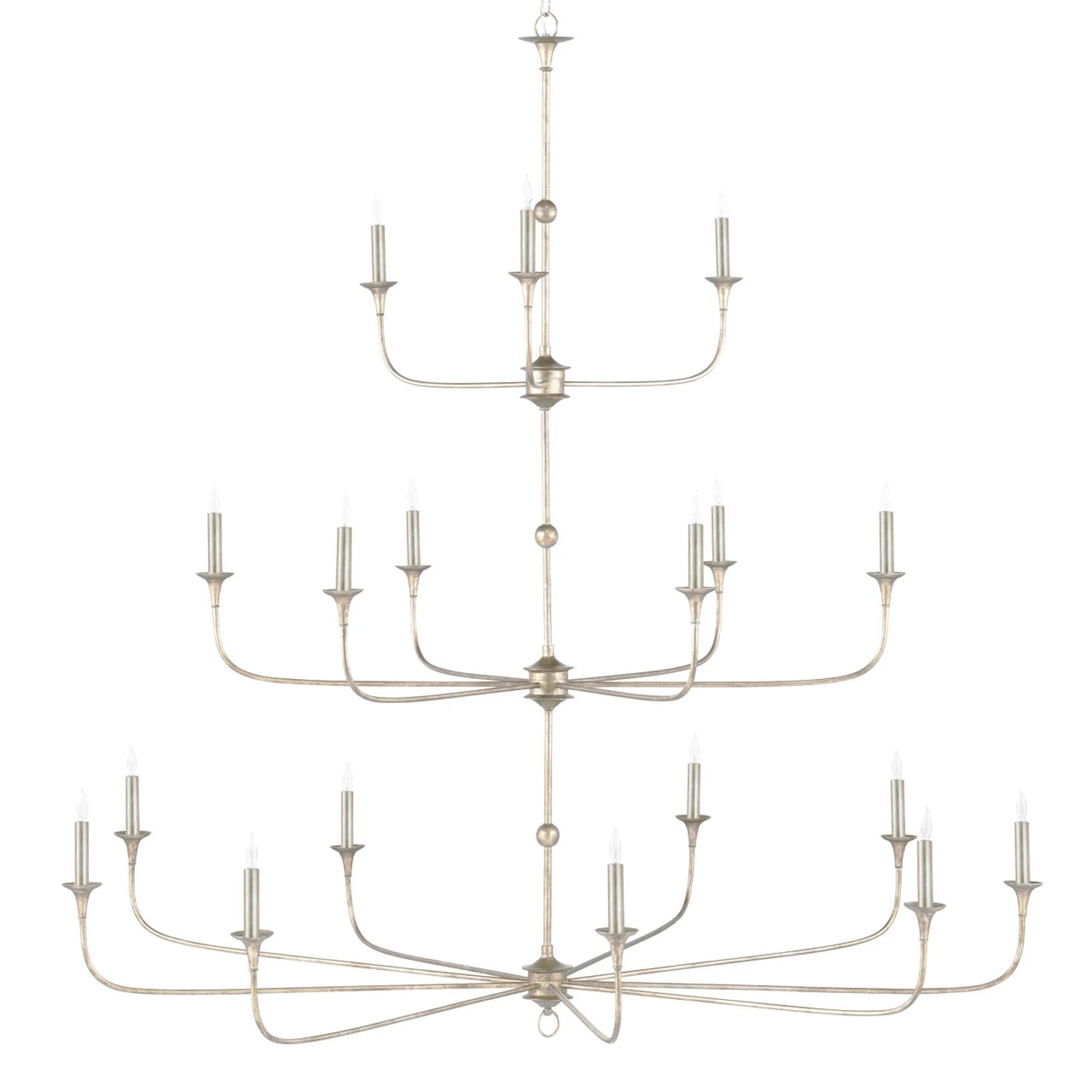 The Nottaway Grande Chandelier is a three tier, study in restrained elegance, combining minimalist design with graceful detailing. Slender arms extend fluidly from petite cog-like accents at the base of each stem, while the lower tier is subtly finished with a delicate ornamental ring—an understated detail that rewards a closer look.